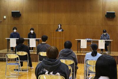 生徒総会では、執行部より気高祭など今年度上半期の実施事業と中間決算が報告されました。