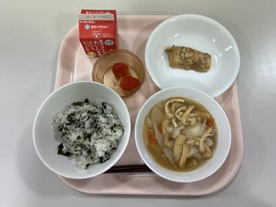 わかめご飯 メカジキのごまみそ焼き はっと汁 ☆いちご